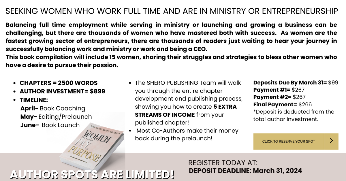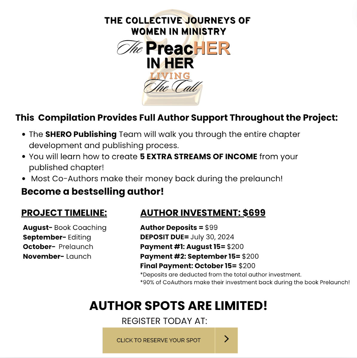 Many of us have once lacked courage, been fearful or shameful of our past, now is the time for you to share your journey to wholeness, boldness, uniqueness, and SUCCESS to bless other women!! Become a Co-Author and share your story of Becoming Unapologetically You to thousands!